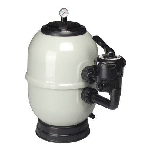 Ламинированный фильтр из стеклопластика. С новой быстросъемной крышкой и базой из полипропилена. Оборудован манометром, сливной пробкой. Максимальное рабочее давление: 2,5 кг/см2. максимальная скорость фильтрации: 50 м3/ч/м2.