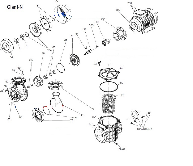 PSH F-GIANT-N 21 – это одноступенчатый насос с горизонтальным расположением вала и электрическим приводом.