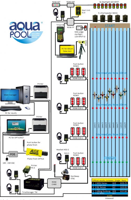 Профессиональная система синхронизации с TimeManager TM позволяет выводить все каналы для каждой полосы с идентификацией (промежуточное время и время окончания). Это значит для регаты.