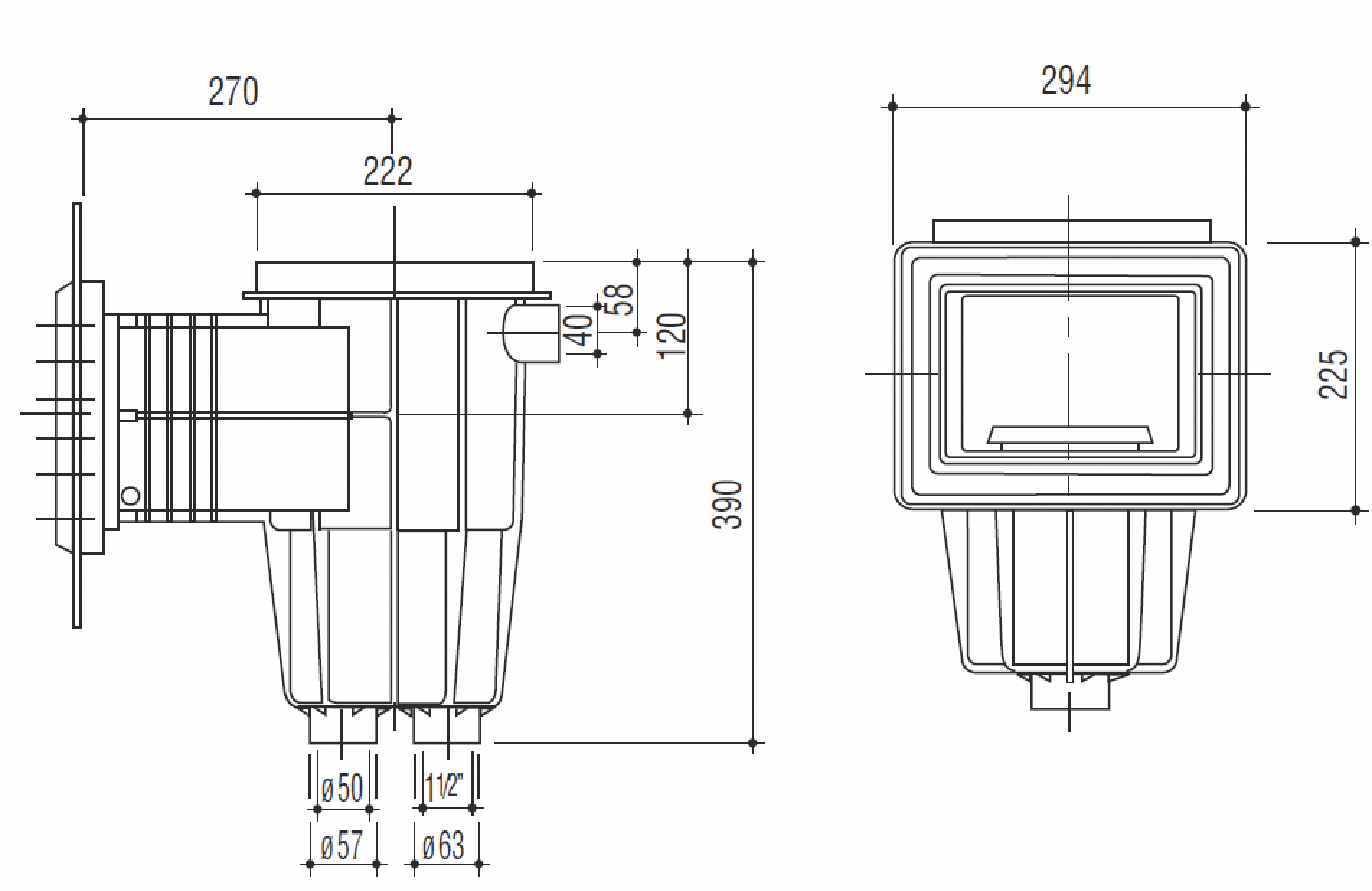 Диаметр подключения 50 мм, 1 1/2"