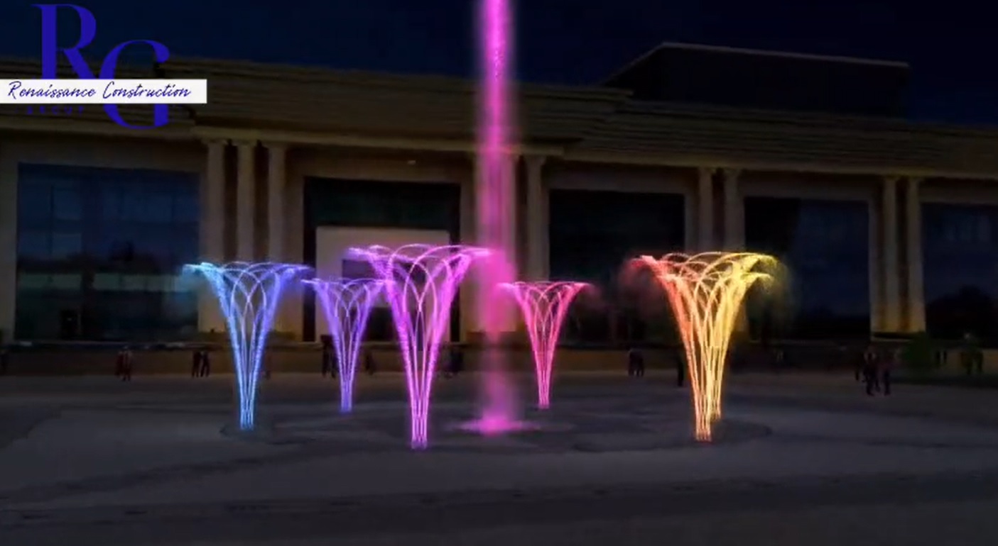 Фонтан оснащен системой фильтраций, туманообразование. 6 выдов насадок. 215 светильников, 22 насосов. размер 16 Х 16 метров. Программное обеспечение и система управление с контроллером, 10 программы озвучивание с возможностью до 100 сцен.